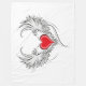 Artistically painted red heart with angel wings gray, decorated with black smooth contour.