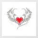 Artistically painted red heart with angel wings gray, decorated with black smooth contour.