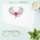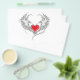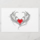 Artistically painted red heart with angel wings gray, decorated with black smooth contour.