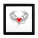 Artistically painted red heart with angel wings gray, decorated with black smooth contour.