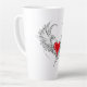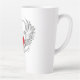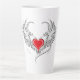 Artistically painted red heart with angel wings gray, decorated with black smooth contour.