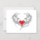 Artistically painted red heart with angel wings gray, decorated with black smooth contour.