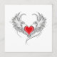Artistically painted red heart with angel wings gray, decorated with black smooth contour.