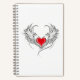 Artistically painted red heart with angel wings gray, decorated with black smooth contour.