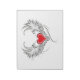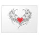 Artistically painted red heart with angel wings gray, decorated with black smooth contour.