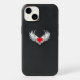 Artistically painted red heart with angel wings gray, decorated with black smooth contour.