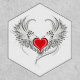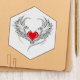 Artistically painted red heart with angel wings gray, decorated with black smooth contour.
