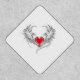 Artistically painted red heart with angel wings gray, decorated with black smooth contour.