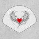 Artistically painted red heart with angel wings gray, decorated with black smooth contour.