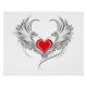 Artistically painted red heart with angel wings gray, decorated with black smooth contour.