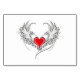 Artistically painted red heart with angel wings gray, decorated with black smooth contour.