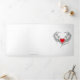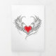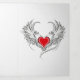 Artistically painted red heart with angel wings gray, decorated with black smooth contour.