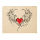 Artistically painted red heart with angel wings gray, decorated with black smooth contour.