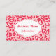 A fun red and pink leopard print decorates this professional business card. Customize this business card to suit your needs. Change the text, font size, etc...The design is from original art. Use this stylish business card for a bakery, consultant, boutique, fashion, clothing, alterations, decor, boutique, makeup artist, cosmetologist, candy, hair stylist, salon, spa, nail salon, home decor, interior design, musician, etc...