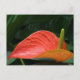 anthurium plant or flamingo flower with spadix protruding from red spathe against green foliage