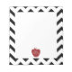 A gift for teachers featuring an illustration of a red apple over a black chevron background.