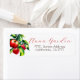 Red Apple bridal shower label feautures red apples on the branches of an apple tree with green leaves.