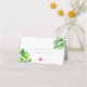 Watercolor greener wedding place cards features green branch of apple tree with a little red heart