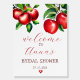 Watercolor Red Apple bridal shower welcome sign features red apples on the green brunch.