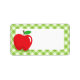 Blank labels featuring a nice red apple with a green leaf. Around the edge is a green gingham pattern border. Add your own text.