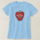A shirt for kindergarten teachers featuring an illustration of a red apple decorated with a black heart with white polka dots and white text that says, "TEACHER." Red and black "Kindergarten..." text surrounds apple.