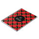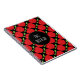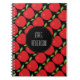 This notebook design features a teacher theme with a red apple pattern as the background and a black circle offering custom text for the teachers name.