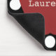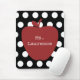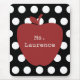 A gift for teachers featuring an illustration of a red apple over a black background with white polka dots. Personalize with your name.