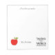 Teacher personalized note pad with red apple and inspirational typography script quote "Teachers change the world one child at a time". Personalize it with your name / text!