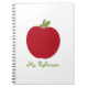 A spiral notebook for teachers featuring an illustration of a red apple. Personalize with your name.
