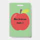 Customize the name, grade and school on this red apple badge.