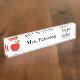 Elegant teacher name plate featuring a red apple with inspirational typography script quote saying: "Teachers change the world one child at a time". Personalize it with your name!