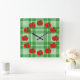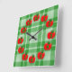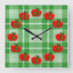 Red Apples Green Checkered Plaid Gingham Square Wall Clock