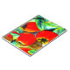 with original art design from watercolour painting of juicy, red apples hanging on trees at the orchard. Bright red and yellow colourful fruit design juxtaposed against the lime green coloured leaves.