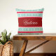 Bring holiday joy to your decor with this festive throw pillow featuring an aqua and red Christmas pattern, complete with a custom text area in the middle. This unique design allows you to personalize your pillow with a special message or name, making it a perfect accent for your living room, bedroom, or holiday gatherings. The vibrant colors and cheerful patterns create a warm and inviting atmosphere, ideal for celebrating the season. Perfect as a personal touch for your home or as a thoughtful, customized gift, this Christmas-themed pillow combines style and comfort for a joyful holiday experience.