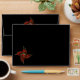 An abstract work in fiery red and gold. A clear red gem is surrounded by gold-edged flames accented with sparkling rubies and yellow starbursts. The swirling, spiraling fractals in the background appear in deeper colors inside the gold filigree of the flame motif.
