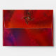 An abstract work in fiery red and gold. A clear red gem is surrounded by gold-edged flames accented with sparkling rubies and yellow starbursts. The swirling, spiraling fractals in the background appear in deeper colors inside the gold filigree of the flame motif.