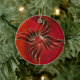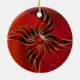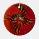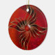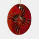 An abstract work in fiery red and gold. A clear red gem is surrounded by gold-edged flames accented with sparkling rubies and yellow starbursts. The swirling, spiraling fractals in the background appear in deeper colors inside the gold filigree of the flame motif.