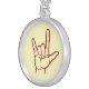 Cool necklace that is perfect for all those who love sign language and saying I Love You. Featuring an I Love You in Sign Language hand. Fully customizable. From our Sign Language Necklaces Collection.