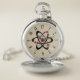Red Atom Design Pocket Watch with customizable background color and optional personalization.