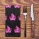 Red Autumn Maple Leaf Pattern on Black Floral Cloth Napkin