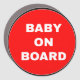 Ensure your family's safety on the road with this highly visible "Baby On Board" car magnet in a bold red color. The durable, weather-resistant material ensures it will hold up through all seasons without fading. Unlike a sticker, this magnet is completely removable and reusable, making it easy to transfer between vehicles. It's a thoughtful and practical gift for new parents, baby showers, or grandparents.