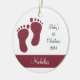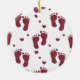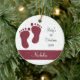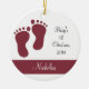 This design features a baby footprint along with the text that reads, "Baby's 1st Christmas (year). You can change the Christmas and the year also. His or her name can be customized across the bottom. On the back there are footprints that match the color on the front. Check out my store for more color options and other products with these footprints.