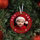 Red Babys First Christmas Photo Snowflake & Laurel Ceramic Ornament