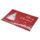 Festive red background with a white Christmas tree. Very modern contemporary and fun Christmas design for your Christmas dinners placemats.
