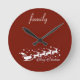 Red Background with Santa Claus and Reindeer Round Clock