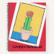 This artist's sketchbook is decorated with an original drawing of a red ball cactus, and can be personalized with your name and words. It is hand drawn using pens and watercolour. The cactus has a green base and a prickly red top, and is in a flower pot. The background is yellow and blue, the pot is pinky beige and the cactus green and red. It has a a thin black border and white surround on a red background. It's a charming example of simple, naive, art. The drawing is also on the back of the notebook.