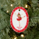 This cute holiday ornament features ballerina in red tutu dancing in a white frame on a red and white snowflake background. Add your child's name and year to personalize. Makes a great gift for your little ballerina.