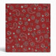 A great binder for school or home. It features a red, white, and black bandana pattern on the front and back. The spine is black with customizable red text.