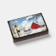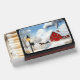 Christmas matchbox with red barn snowy scene.
