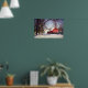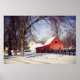 Red barn in snow poster